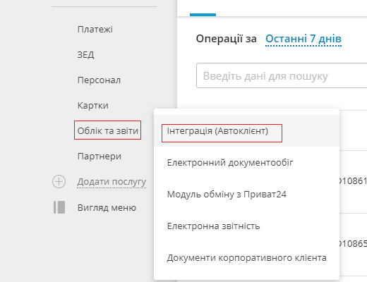 У меню Каталог послуг виберіть розділ Інтеграція (Автоклієнт) і натисніть кнопку Підключити, потім – Відкрити.